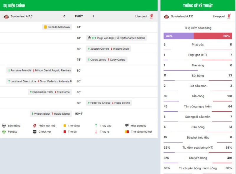 Không chỉ là những con số hiển thị 1–0 hay 1–1. Bongda info còn hiển thị: