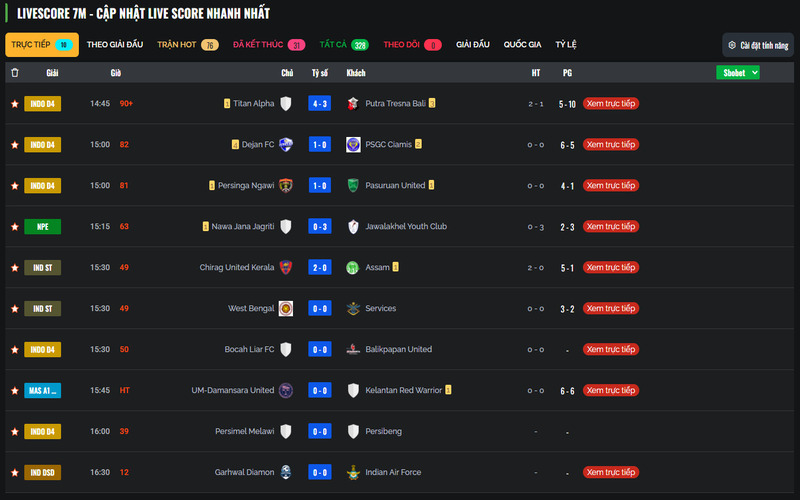- Theo dõi tỷ số trực tiếp khi trận đấu đang diễn ra