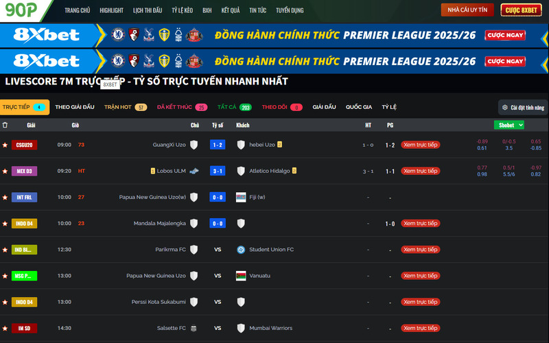 - Bước 3: Hệ thống sẽ hiển thị toàn bộ thông tin về các trận đấu đang và sắp diễn ra. Bạn chỉ cần nhấp chọn trận muốn xem để cập nhật tỷ số, kết quả, kèo nhà cái hoặc tin tức chi tiết.