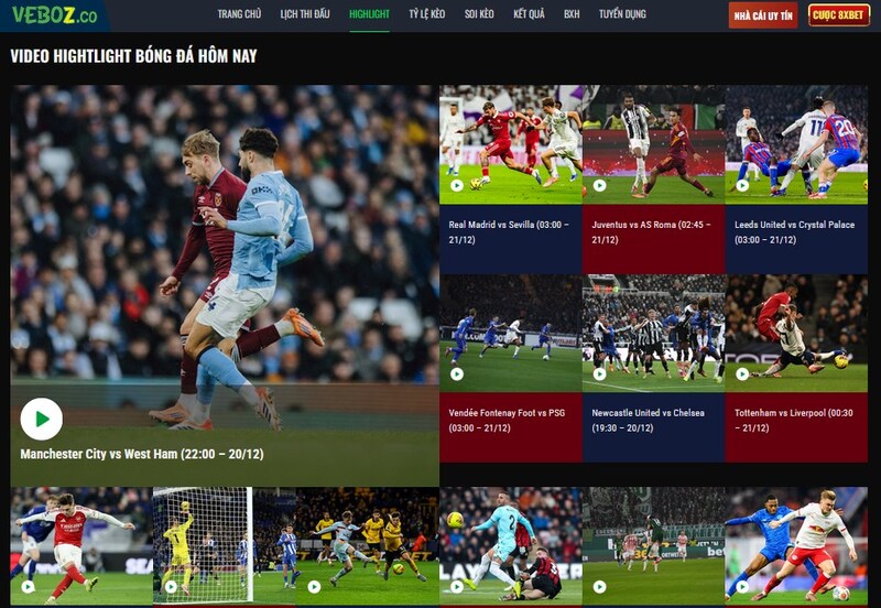 Kết quả bóng đá trực tuyến trên Vebo luôn đi kèm với highlight cực nhanh