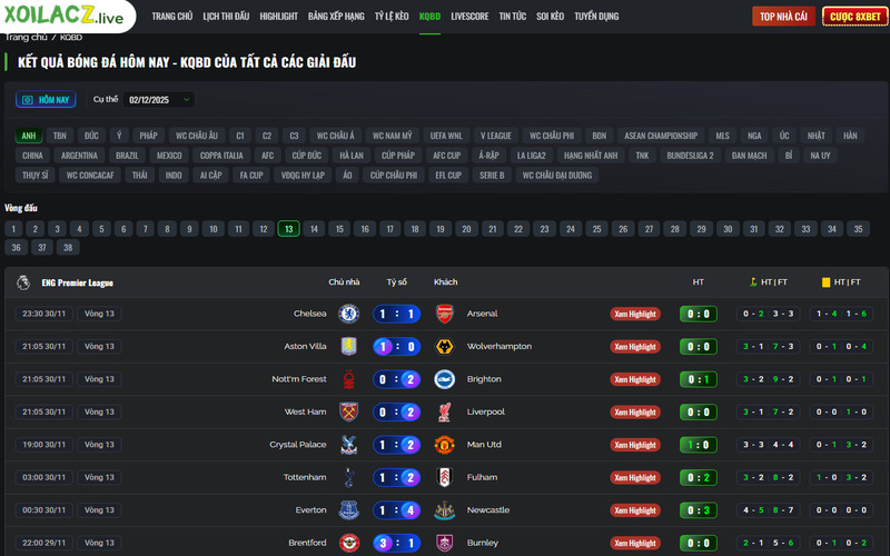 - Bước 4: Chọn trận đấu cụ thể để xem chi tiết kết quả và các thống kê liên quan.